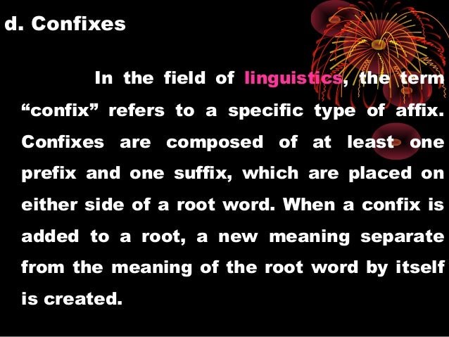 "As is demonstrated by m-as-ku, tens are derived from the confix m- ... -hu." - linguistics rare - An affix which is not divided, and which does not divide a root: thus, a prefix, suffix, or interfix